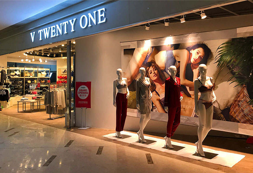 香港V21国际有限公司旗下品牌V21是一家跨品类连锁综合店,产品有内衣、女装、皮具、饰品等,目前国内领先的创新模式。